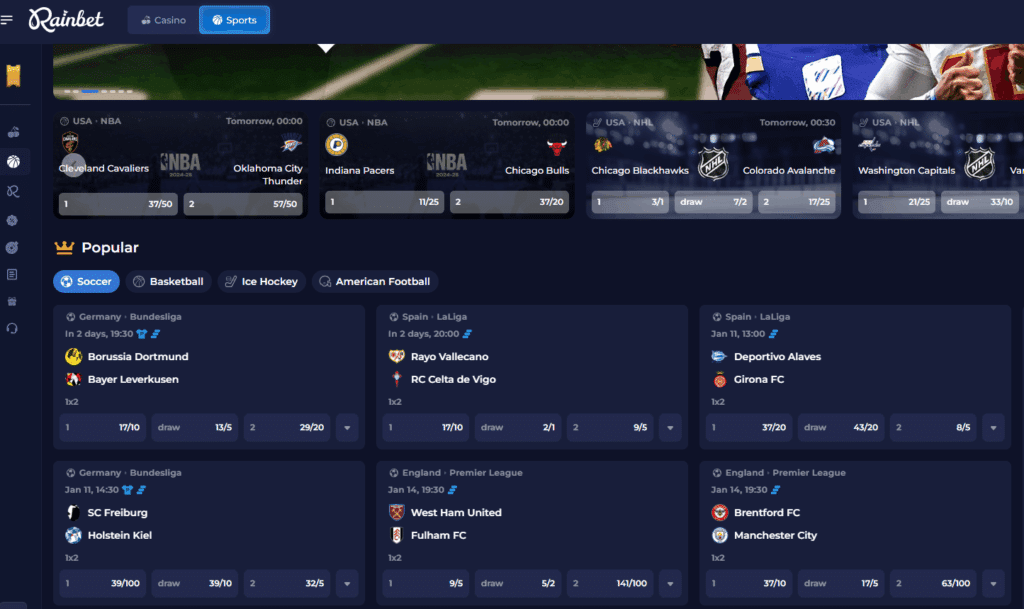 Sports betting is one of the fastest-growing forms of online entertainment — and Rainbet has quickly become a favorite platform for players who want a secure, modern, and easy-to-use space to enjoy it. Whether you’re interested in basketball, football, tennis, or esports, Rainbet offers a wide range of betting markets, live odds, and intuitive tools designed for both beginners and seasoned bettors.